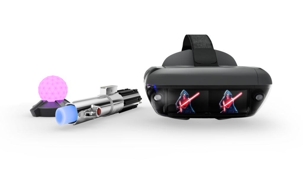 The Disney AR Star Wars Lightsaber Headset brings the galaxy far, far away to life like never before. Combining augmented reality technology with the iconic lightsaber experience, this innovative headset immerses users in lightsaber battles against virtual enemies. With precise motion tracking and realistic sound effects, fans can wield their own virtual lightsabers and engage in epic duels.